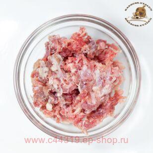 Блюдо представлено в виде фарша, что удобно и для щенков, и для возрастных собак, а также при заболеваниях.