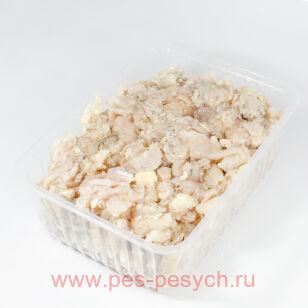 Описание: отличается от неочищенного рубца тем, что с него удалена внутренняя ворсистая поверхность. Отличается более низким содержанием полезных веществ, но при этом легче усваивается. Порублен на мелкие кусочки, что упрощает кормление собак мелких пород, щенков и кошек. Рекомендуется давать в сыром виде.